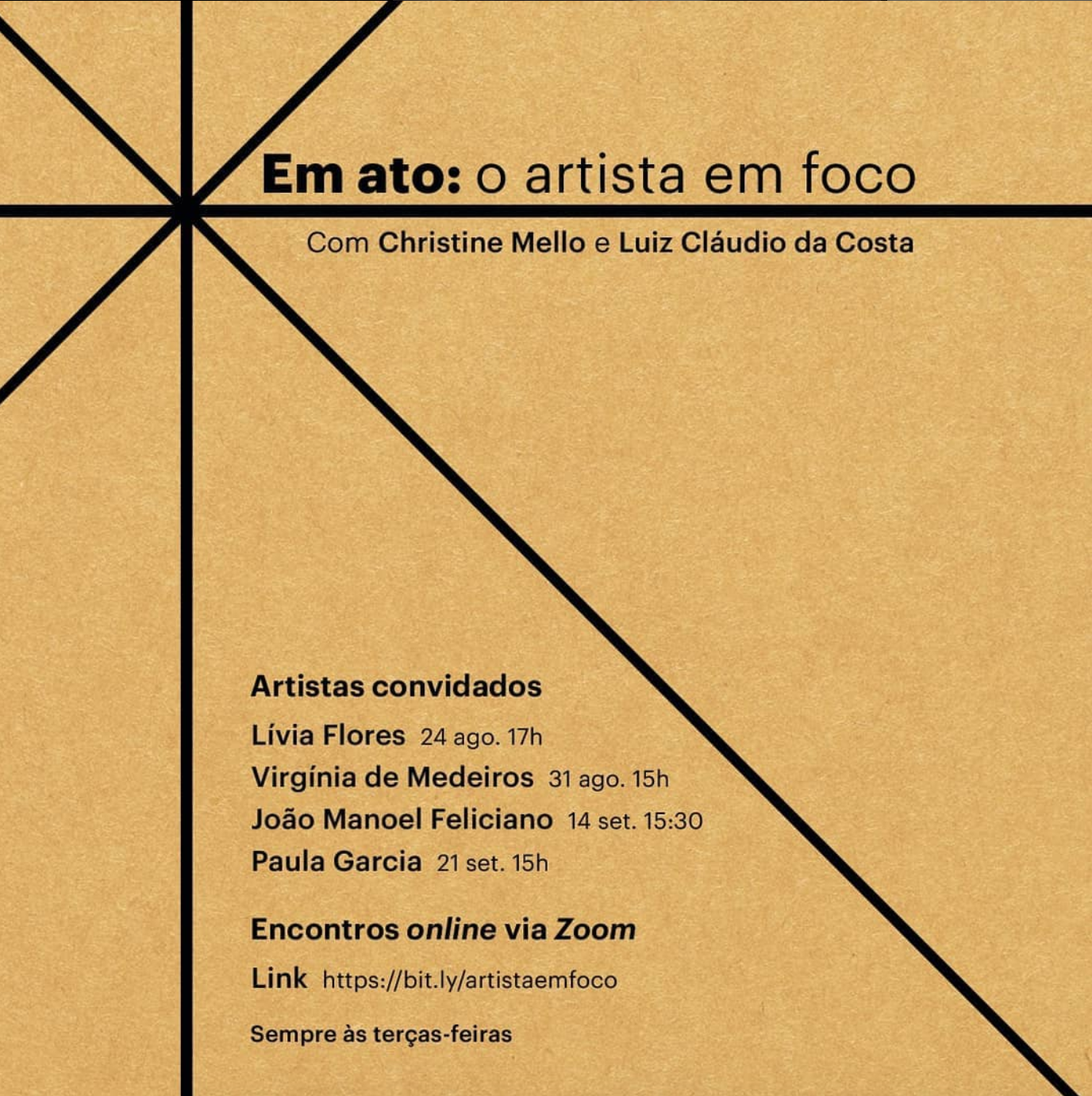 “Em ato: o artista em foco” com Chris Mello e LUIZ CLÁUDIO DA COSTA 22 de agosto de 2021 Encontros online via Zoom: https://bit.ly/artistaemfoco